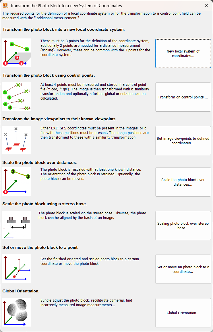 The photo block is transferred to a new coordinate system with a similarity transformation.