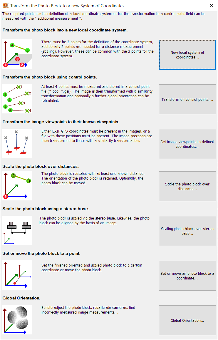 This method can be used if the alignment of the photo block is to be maintained or if a local coordinate system cannot be easily created. It can be particularly advantageous when using drones without RTK GPS.