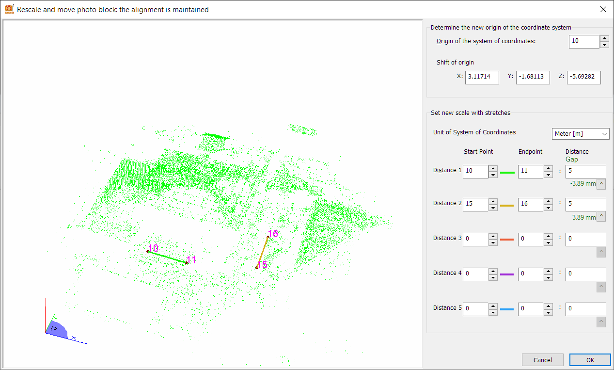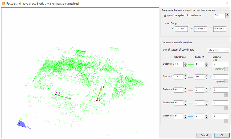 The photo block and thus the point cloud are now correctly scaled and the desired coordinate system is now defined. You can now crop the point cloud if desired and then export it.